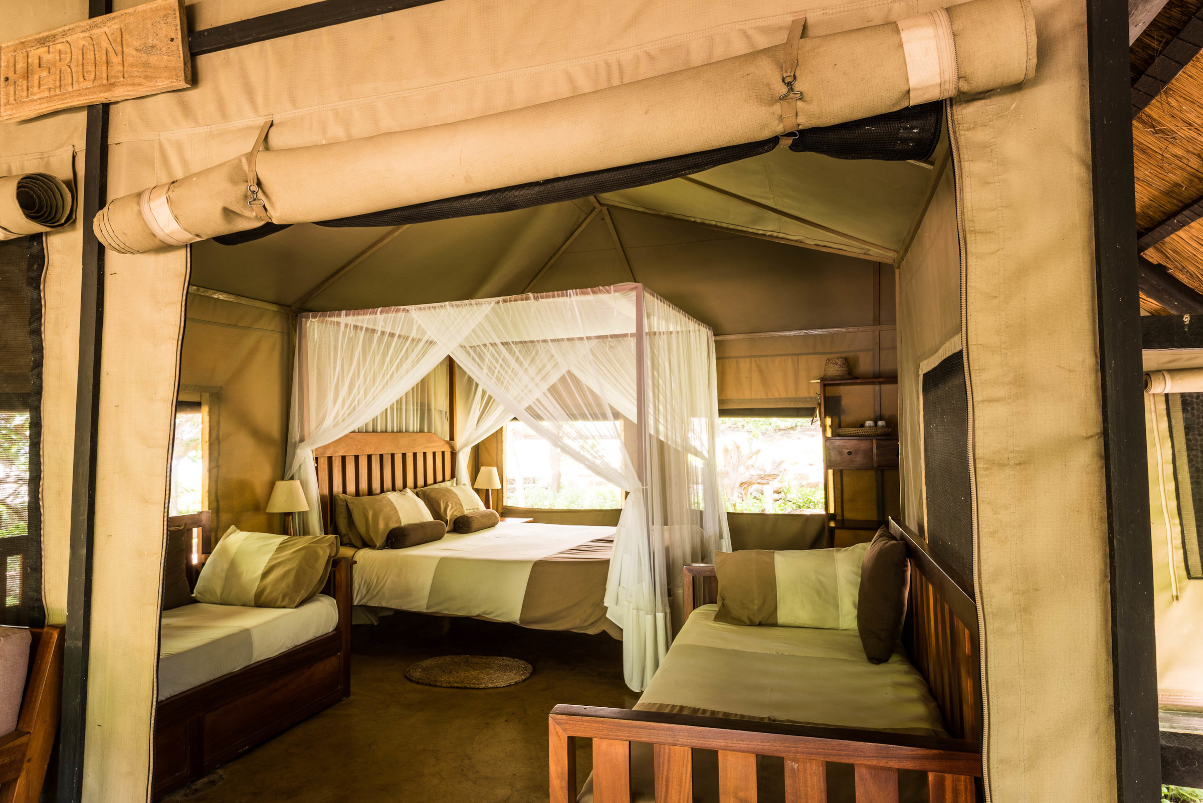 Overnight 12 nights on safari we stay at chalets, tented lodges and guest houses, with en suite facilities. On Mumbo Island 2 of the tented rooms share a bathroom – rooms will be allocated by guides.